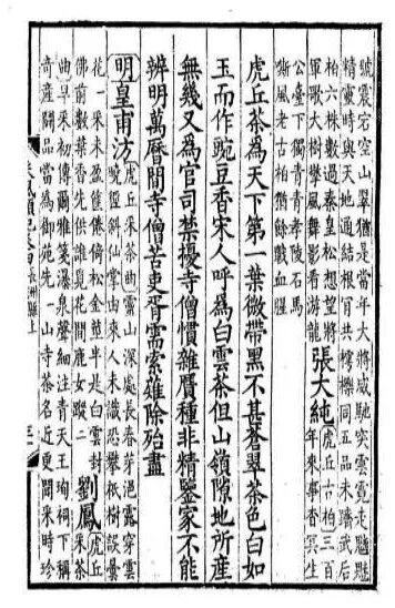 经过这场劫难,虎丘茶就所剩无几了,偶尔能够获取少许,就成为人们津津乐道的一大幸事。清初文学家尤侗,有幸尝过一次虎丘茶后就兴致勃勃地写过一首《试虎丘茶》诗:“虎丘之茶,名甲天下,官锁茶园,食之者寡,更有窃者。竹炉活火,炭无烟烬,松院匡床,器悉陶瓦,佥曰鲧哉,吾与点也。”此诗是用典故的谐音来表达吴语的意思。“佥曰鲧哉”出自《尚书·尧典》,“吾与点也”出自《论语》。“鲧哉”,谐吴音“(水)开了”;“点”,即沏茶,“吾与点也”在这里的意思是“我来帮你泡茶了”,从此诗中可以看出尝过虎丘茶的尤侗确实是无比欣喜。