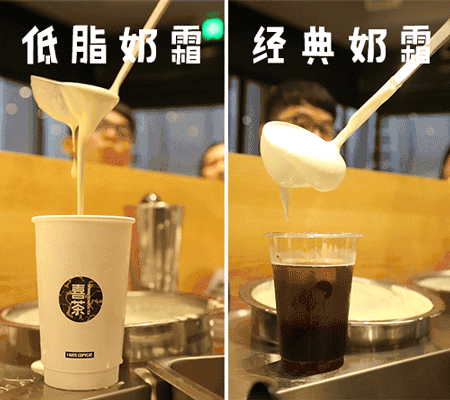 喜茶的芝士奶盖分为低脂和全脂两种。低脂奶盖口味偏清新,适合减肥中的妹子。当然,如果你不是很介意那一点点热量,请点全脂奶盖!