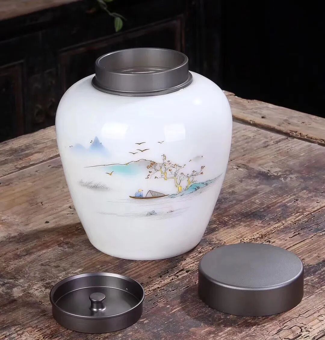 7、陶瓷茶叶罐:密封性能一般,防光、防潮性能好。缺点是不耐用,存放不周,有摔碎的危险。更适合把玩观赏。