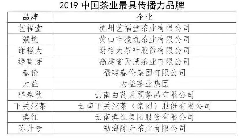 2019中国茶叶最具传播力品牌