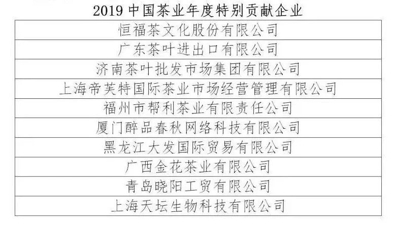 2019中国茶业年度特别贡献企业