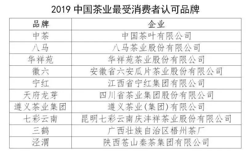 2019中国茶业最受消费者认可品牌