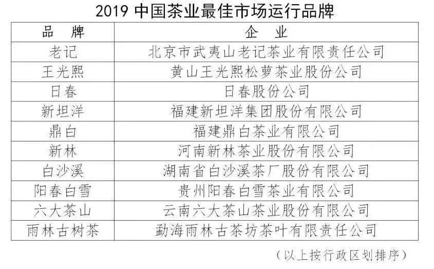 2019年度中国茶叶品牌系列榜单