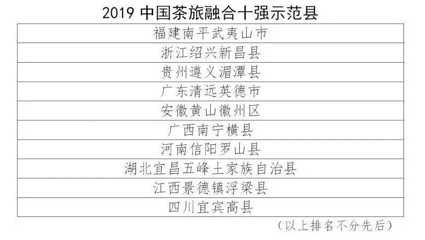 2019中国茶旅融合十强示范县