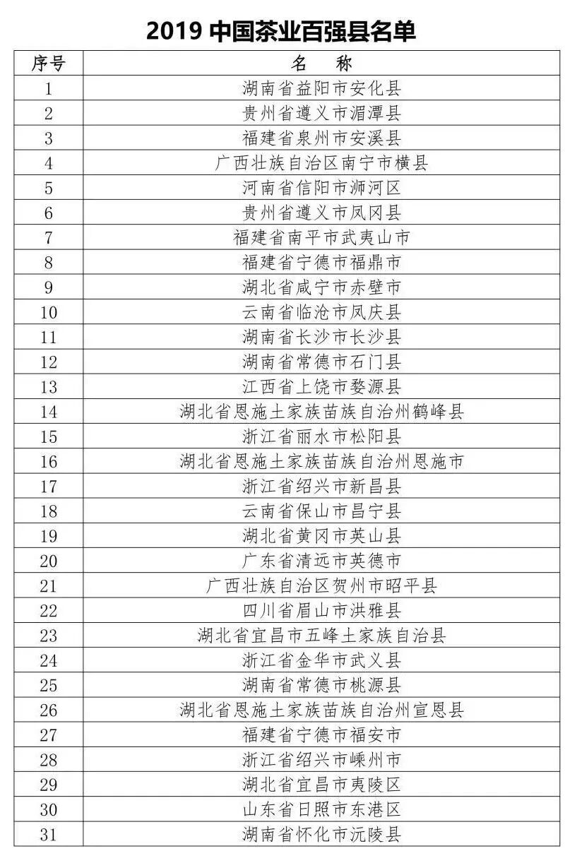 2019中国茶业百强县资料来源:中国茶叶流通协会