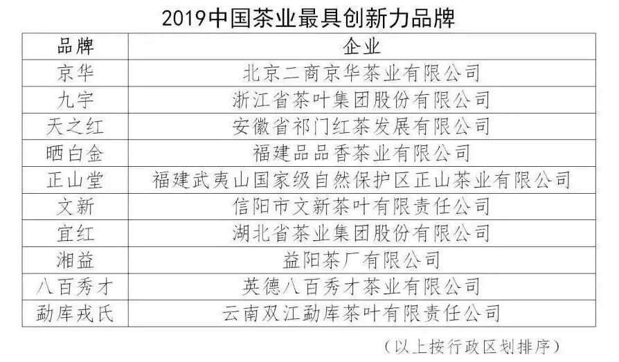 2019中国茶业最具创新力品牌