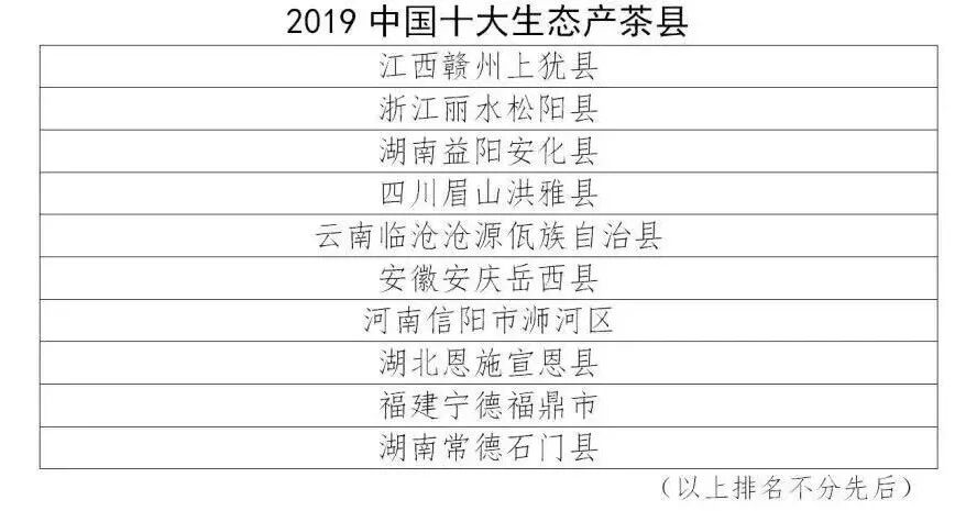 2019中国十大生态产茶强县