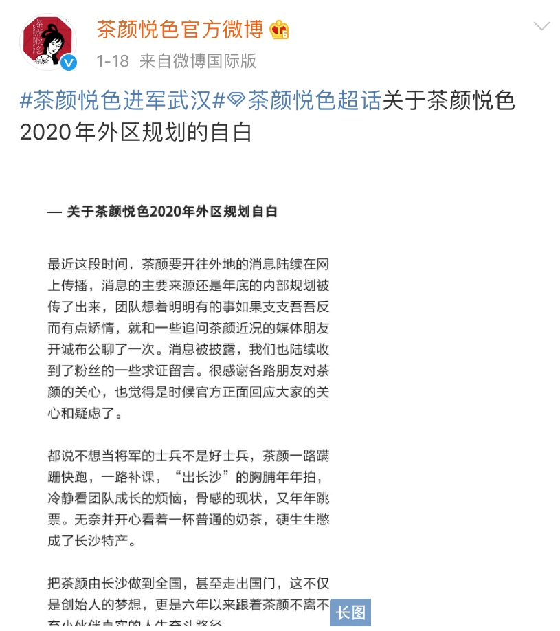 而今年1月,长沙本土茶饮品牌茶颜悦色