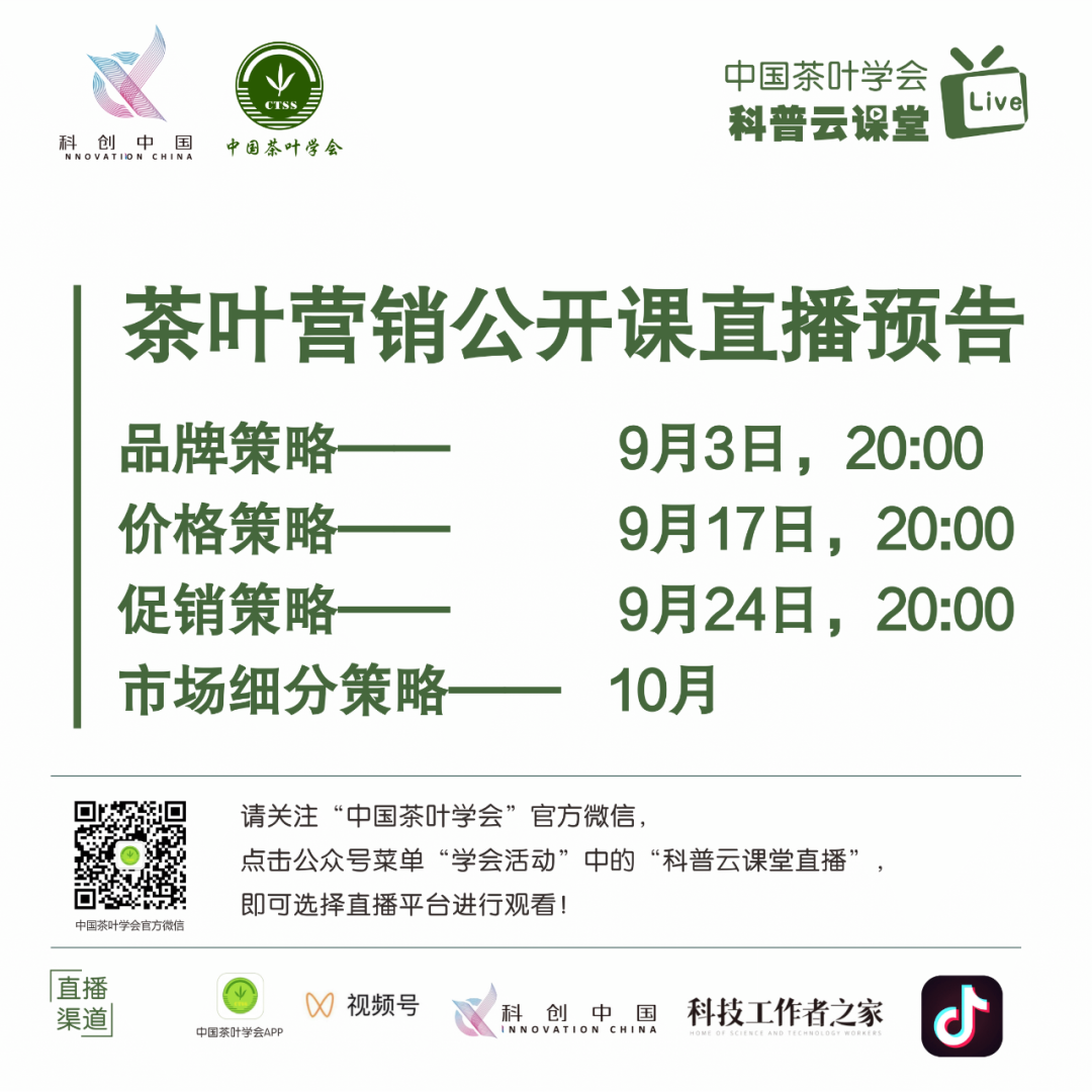 科普云课堂丨"茶叶营销系列公开课——品牌策略",9月3日2000与您分享~~~
