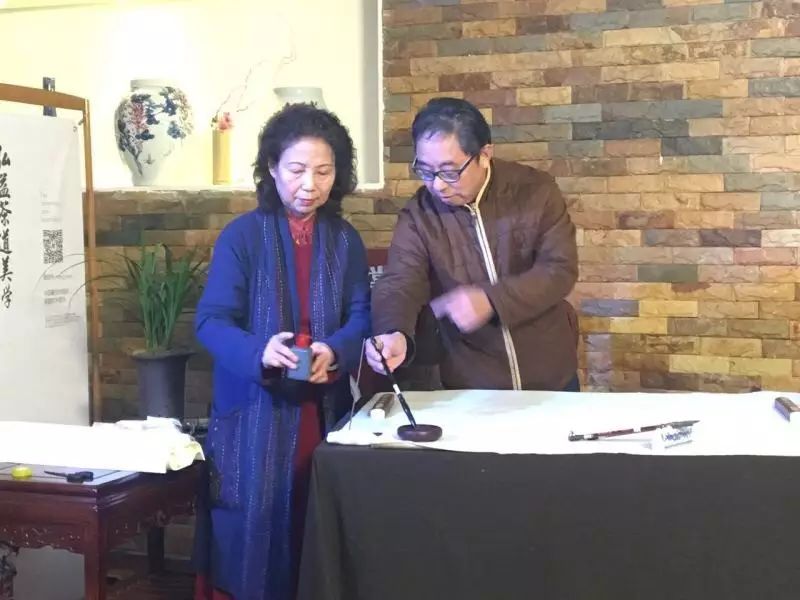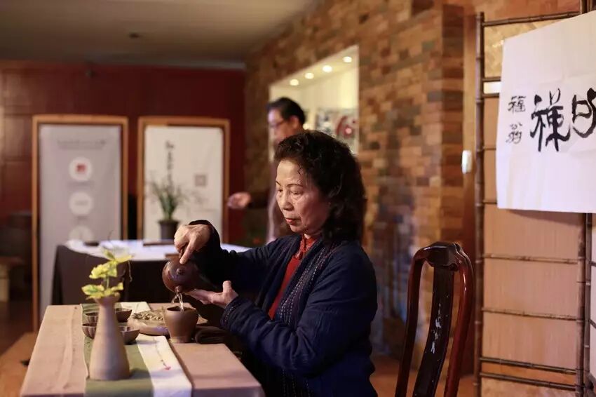 课程结束时,要学员们准备高级茶艺表演,曾阿姨在一次给了我们惊喜,她和老伴一起准备了节目——观雨听禅,或许对我们来说是节目对他们却是生活中关于茶的日常吧。阿姨安稳的泡着茶,叔叔静心的写着字。
