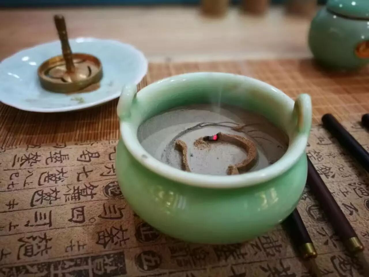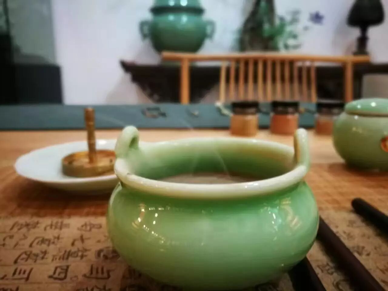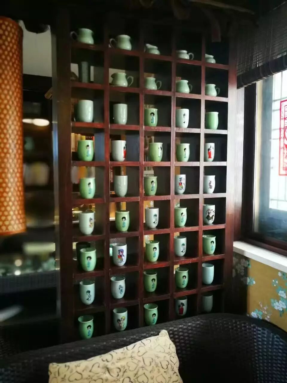 细看茶空间,还有一排排玲珑的青瓷杯,