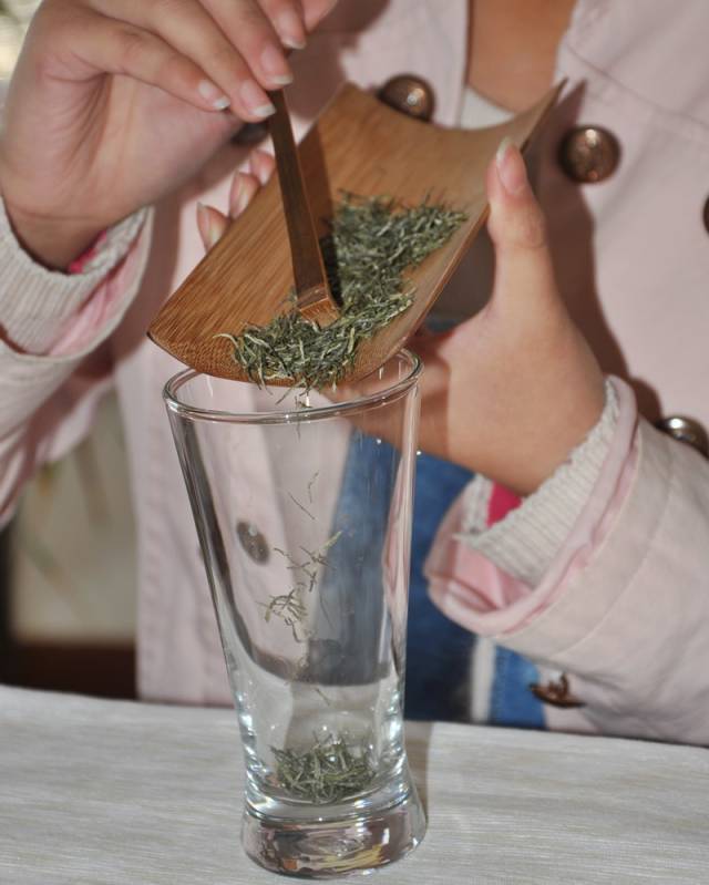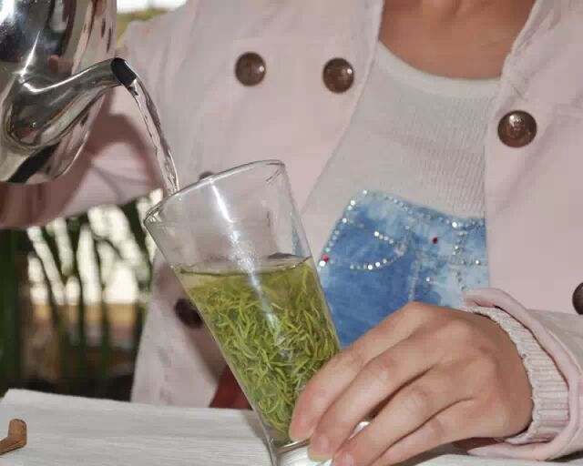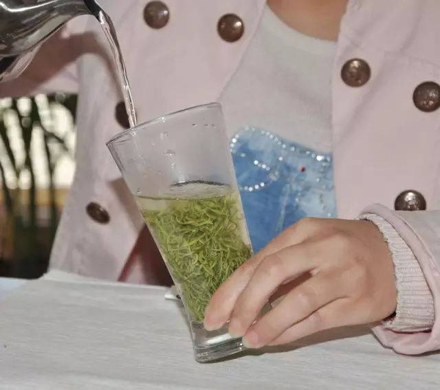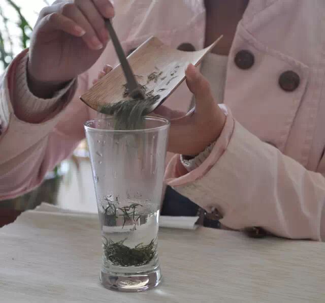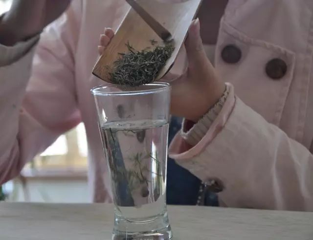 然后再将茶叶投入杯中浸泡,观赏茶叶在杯中的变化并适时饮用。