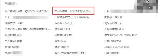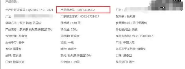 某销量第一的铁观音资料,首先,产品标准号不是标准的铁观音国家标号,而是所谓的企业标准号,当然,也不乏一些高标准的企业标准,但那一定是在业界很牛的龙头企业了;第二就是,它的茶种类为铁观音而不是「安溪铁观音」,很大可能是拼配。