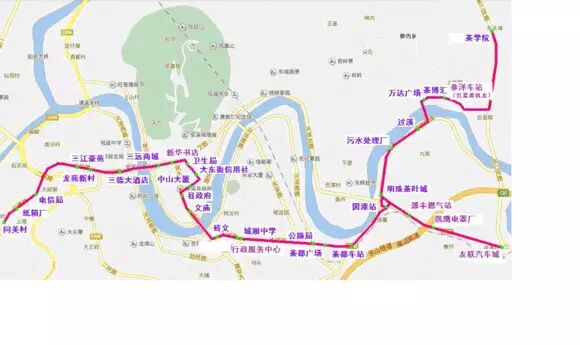 6A线 6B线源丰燃气站 明珠茶叶城凯鹰电器厂 污水处理厂友联汽车城 过溪万达广场茶博汇参洋车站(红星美凯龙)茶学院