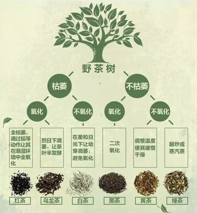 不同的产地产生的不同品种茶树,在不同的制作工艺之下,就成了我们看到的六种茶。