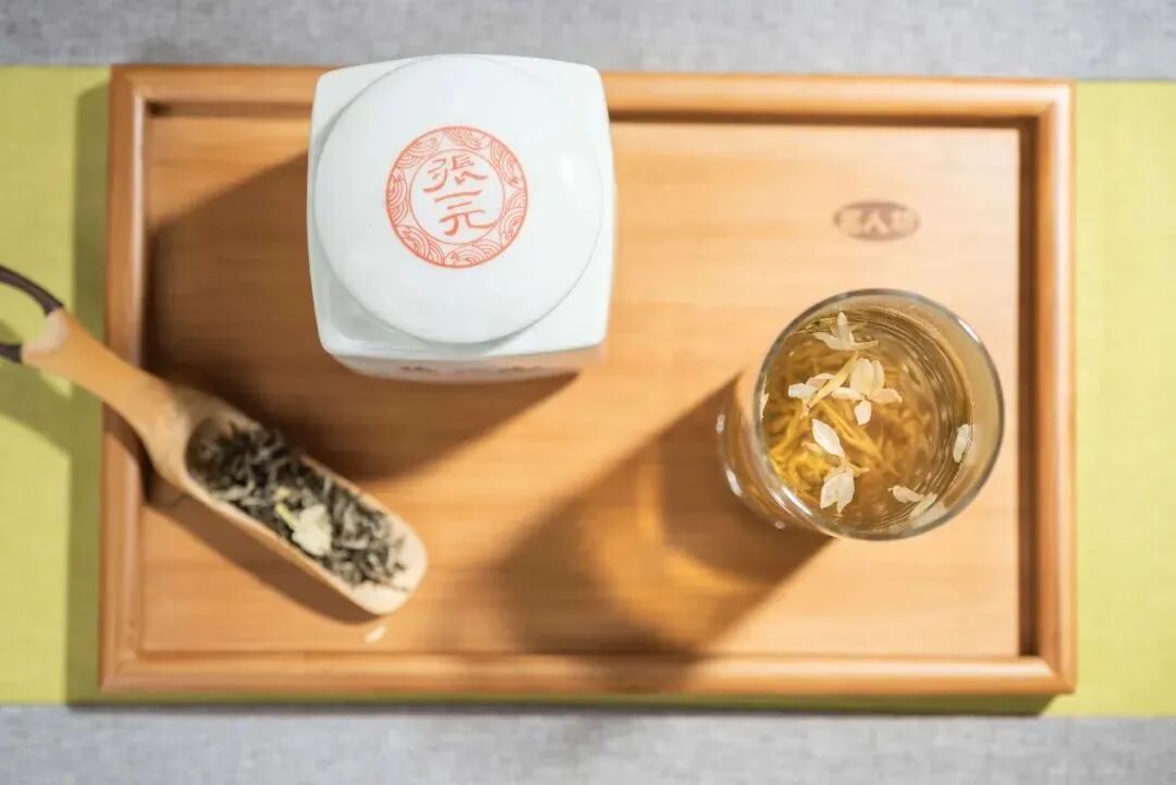 张一元莲花香雪,原料产自被誉为“世界茶文化圣山”的蒙顶山,这里茶树堆青叠翠,山雾流云滚滚,如真似幻,美若大师笔下的山水墨画。茉莉莲花香雪采用“拌花”工艺,干茶可见洁白的茉莉花瓣,犹如“雪花纷飞”,冲泡后朵朵茉莉鲜花漂于茶汤之上,香气扑鼻,而蒙顶山的五座高峰环绕排列,状如莲花,故名“莲花香雪”。