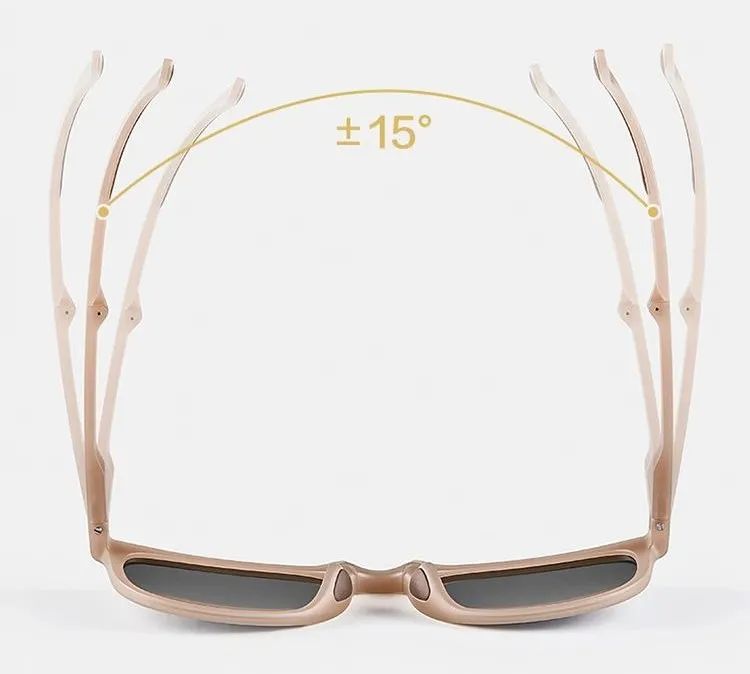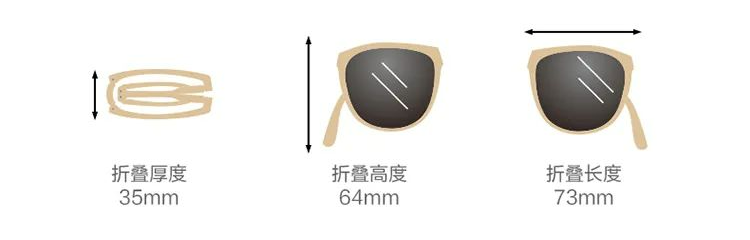 可折叠墨镜采用3D立体建模,结合大钝角设计,让方与圆完美融合,从而更好地中和面部轮廊线条,打造立体小V脸。