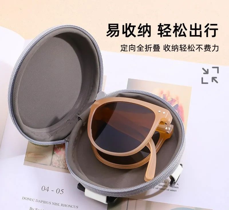 镜框和镜腿采用记忆性高分子材料,耐冲击,不易变形断裂。超韧性PU收纳盒,里层植绒,有效减震耐磨。直径12cm的圆形设计,可有序置放多种物品,出行便利。