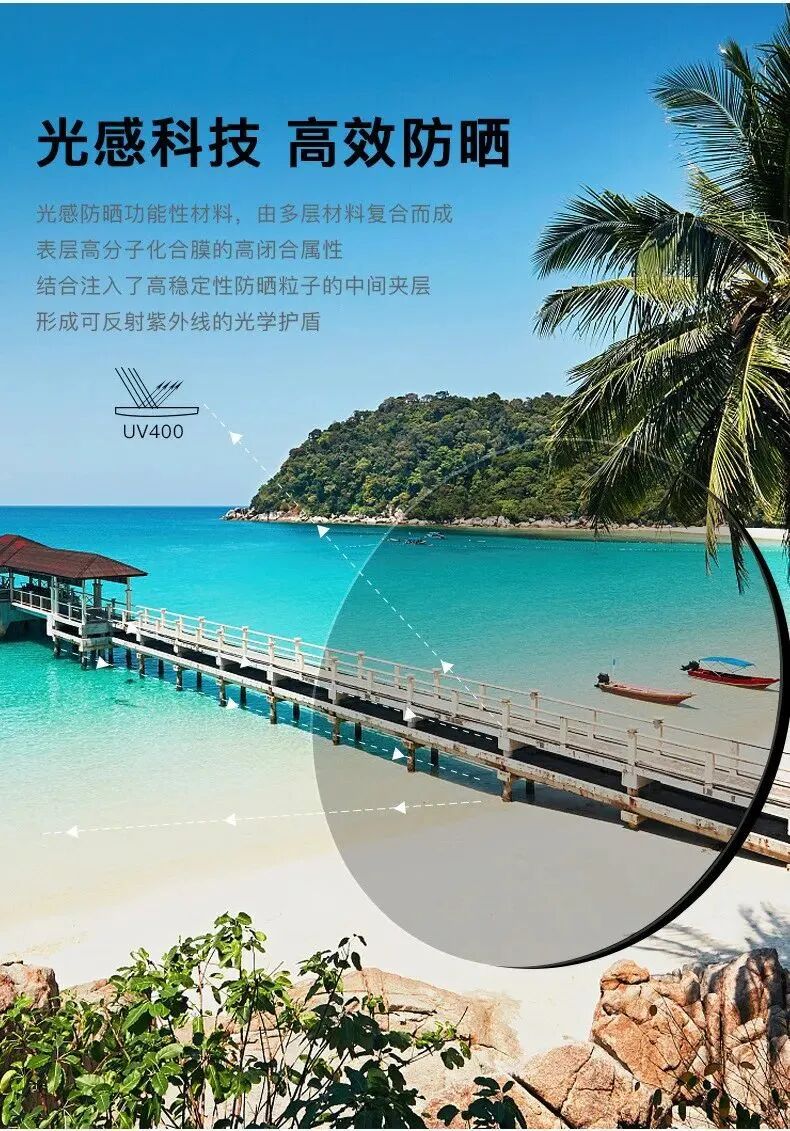 采用RayTurn光感防晒功能性材料,由多层材料复合而成。表层高分子化合膜的高闭合属性结合注入了高稳定性防晒粒子的中间夹层,
