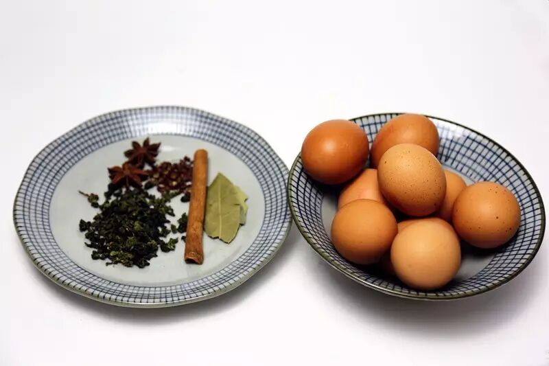第一步:准备食材。鸡蛋几个、茶叶15克、桂皮1块、八角2个、花椒十几粒、香叶2片。(茶叶我用的是铁观音)