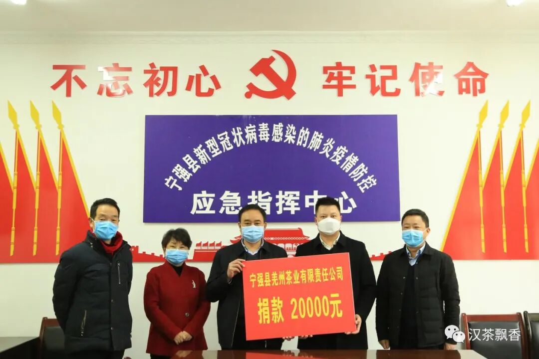公司的发展,离不开社会的支持,有了效益,决不能忘记回馈社会,近年来以不同方式资助。2月14日,宁强县羌州茶业公司向宁强县疫情防控指挥部捐赠2万元用于疫情防控。