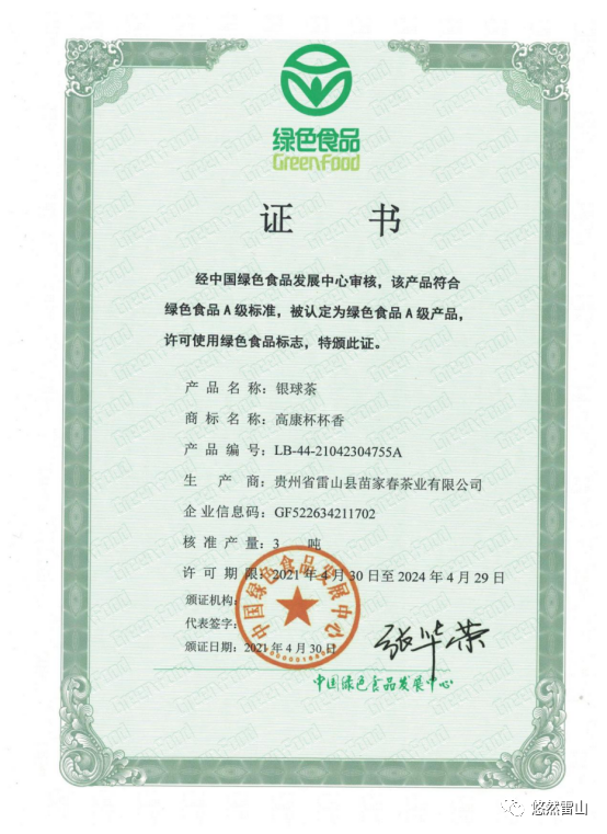 2005年荣获第六届“中茶杯”全国名优茶评比一等奖;2007年被评为雷山县委、县人民政府评为“优秀茶叶企业”;2009年被评定为黔东南州农业产业化经营列席会议评为“州级重点龙头企业”;2010年5月被中共雷山县委、县人民政府评为工业税收贡献“先进企业”;2010年6月荣获黔东南州苗侗情茶叶质量评鉴活动金奖;2010年9月被贵州省扶贫开发领导小组办公室评为“省级扶贫龙头企业”;2010年10月我公司生产的“雷公山清明茶”荣获首届“国饮杯”全国茶叶评比一等奖;2010年6月开始了有机认证工作;2011年8月“雷公山苗家白茶”荣获第九届“中茶杯”全国名优茶评比特等奖;2012年8月我公司生产的“雷公山清明茶”荣获第二届“国饮杯”特等奖;2012-2016连续5年被贵州省工商行政管理局评为省级“守合同、重信用”单位;2012年1月成功注册了“高康杯杯香”商标, 2012年9月被雷山县县委、雷山县人民政府评为在2010-2012年度茶产业发展中的“优秀茶叶产品加工企业”;2014年8月公司员工被省茶产业发展联席会议办公室评为贵州茶行业“十大制茶能手”;2014年10月被省农业产业化经营联席办公室评为贵州省农业产业化“重点龙头企业”;2014年12月“高康杯杯香”被省工商行政管理局评为“贵州省著名商标”,2015年2月成功申请成功了2个实用新型专利,同年6月注册了“苗家春”商标,同年8月公司顺利通过GB/T19001-2008-ISO9001-2008质量管理体系认证和GB/T24001-2004-ISO14001-2004环境管理体系认证;2015年12月公司生产的“高康杯杯香牌雷公山清明茶”荣获贵州省名牌产品称号。2015年11月我公司“高康杯杯香”茶叶在第十六届中国绿色食品博览会中荣获金奖;2016年1月我公司生产的“雷山银球茶”入选《2015年度全国名特优新农产品目录》;2016年8月我公司生产的“高康杯杯香牌艳红茶”荣获第四届“国饮杯”一等奖。2017年公司产品荣鹰选入第六届贵州茶业经济年会指定用茶。2018年2月成功申请了一项发明专利,同年4月公司产品荣获“中国茶叶学会”遴选为“评茶师、茶艺技师”教学茶样;同年,公司产品“清明茶”第二次评定为“贵州省名牌产品”。2019年被雷山县委、雷山县人民政府评为“优秀扶贫企业”,2020年在巩固脱贫攻坚中被当地老百姓喜爱,同年,公司产品尖茶荣获亚太茶茗银奖,被村民誉为巩固脱贫攻坚的好企业。2021年公司董事长被雷山县县委县人民政府评为“三名工程”名加工能手,总经理潘丽菊被省工会评为“黔茶工匠”,公司副经理被共青团雷山县委员会聘请为“春晖乡村振兴智库”专家委员会委员。