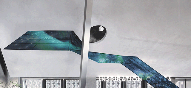 The interior combines modern ink ,digital technology, and interactive design techniques of light and visual aesthetics to present immersive experiences in different scenarios. Combining the five major laboratory plates, from the bottom to the top, through the interior space, which gives people a rich five senses experience.