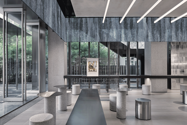 Tracing the origin of the project, the designer interprets the artistic context of the building with a sequence of landscape. The facade of the flagship store is covered by gray bricks, which is interspersed with metal bricks to show both traditional beauty and a youthful atmosphere.