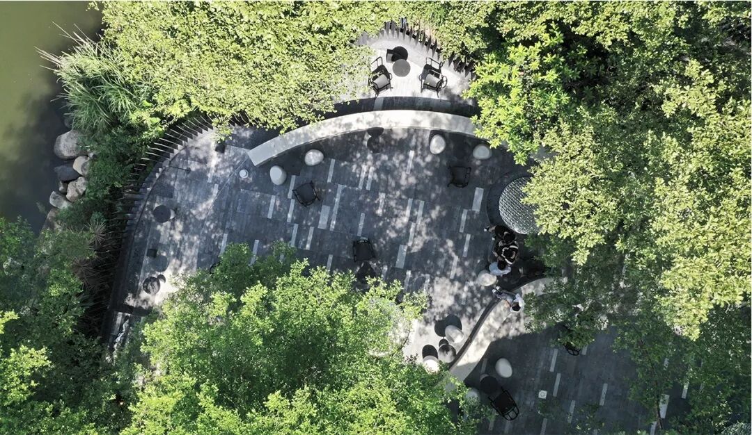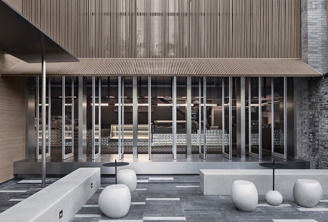 With a holistic perspective, the designer creates a courtyard landscape with minimalist skills, creating a clear and open pattern which encourages the interaction between landscape, objects and people. Taking advantages of the natural surroundings and employing different materials, it presents multiple aesthetics and rich textures, which effectively activates the ornamental and practical functions of the courtyard and balances the distribution of customers.