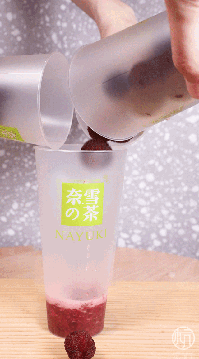 果肉饱满多汁,搭配茉莉毛尖做茶底,大力摇晃几下,人间美味就诞生了!