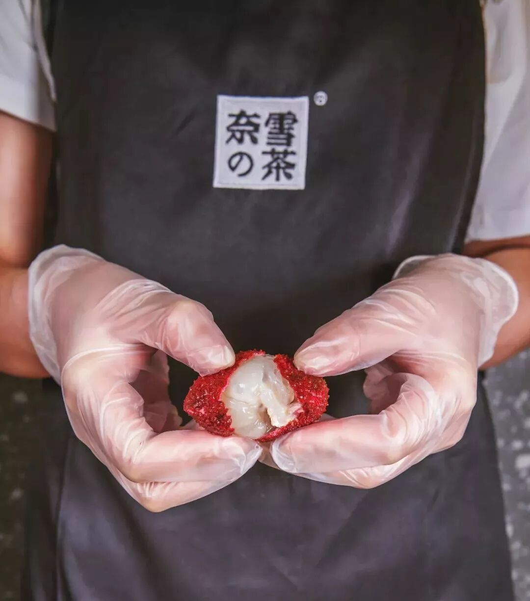所有门店用的荔枝都是奈雪的小哥哥小姐姐们亲手剥壳去核。为了不影响口感,选用的荔枝都不会熟的太过,这样做出来的霸气很荔枝才能喝到时令水果的新鲜味道。