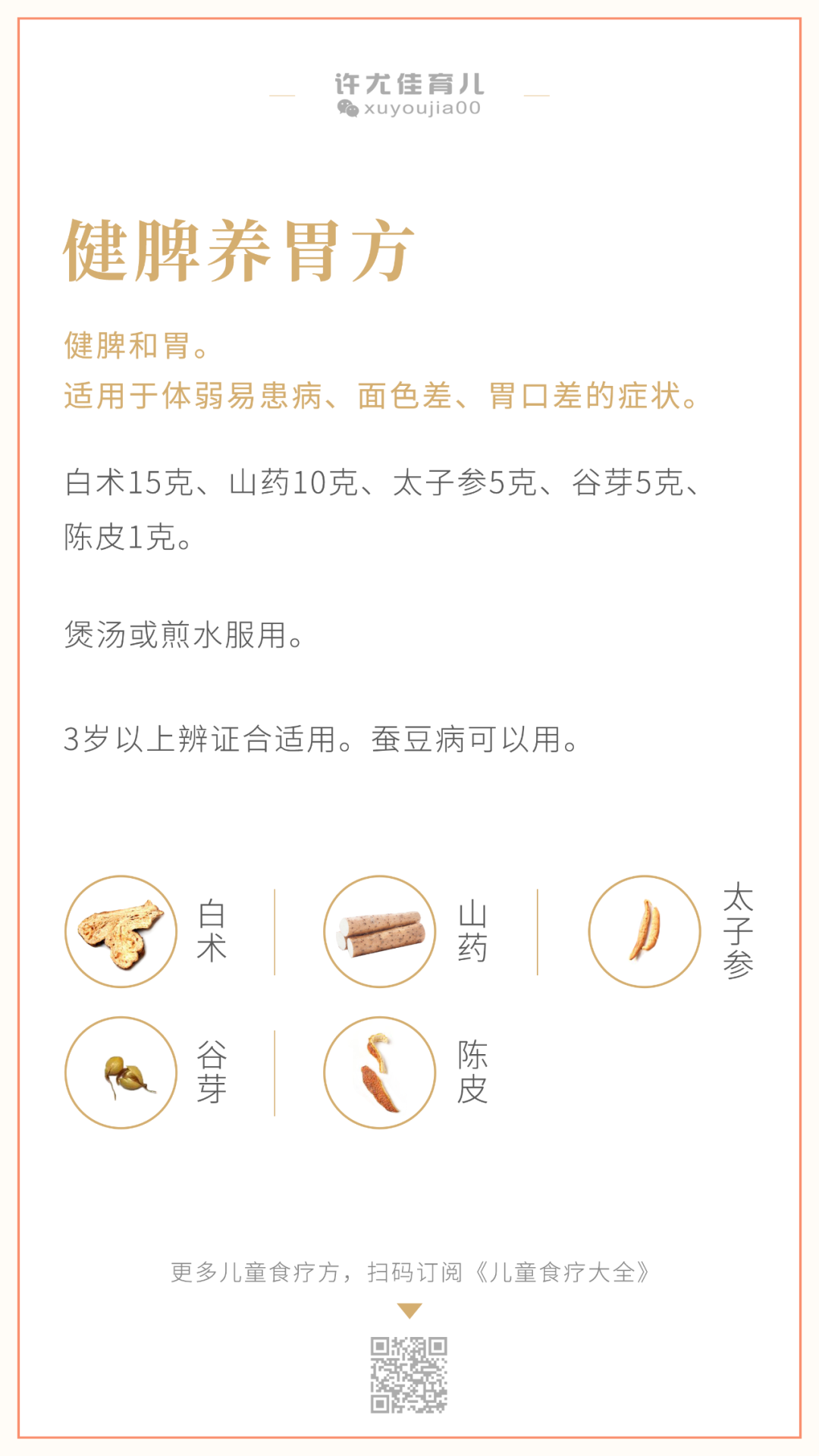 (食疗方的使用,建议先学习必修课《儿童脾胃课》及《用对儿童食疗》)