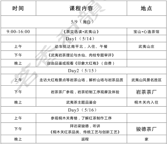 时间:5/9,5/14-5/16地点:上海宝山顾村心逸茶馆,福建武夷山、桐木关。
