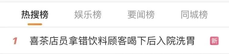 近日,喜茶上海一门店被曝光店员误拿不能喝的样品给顾客导致顾客喝下后入院催吐洗胃相关话题一度冲上热搜第一!