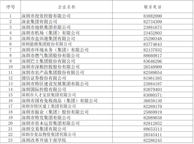 答:市属国企联系方式详见下表。
