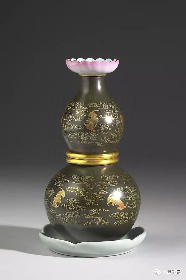 清乾隆 磁胎洋彩厂官釉金花葫芦转旋瓶