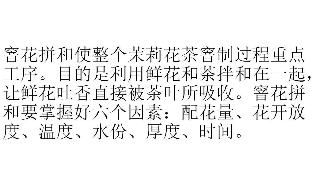 制作100斤需要400斤茉莉花窨香,窨香次数七次左右。