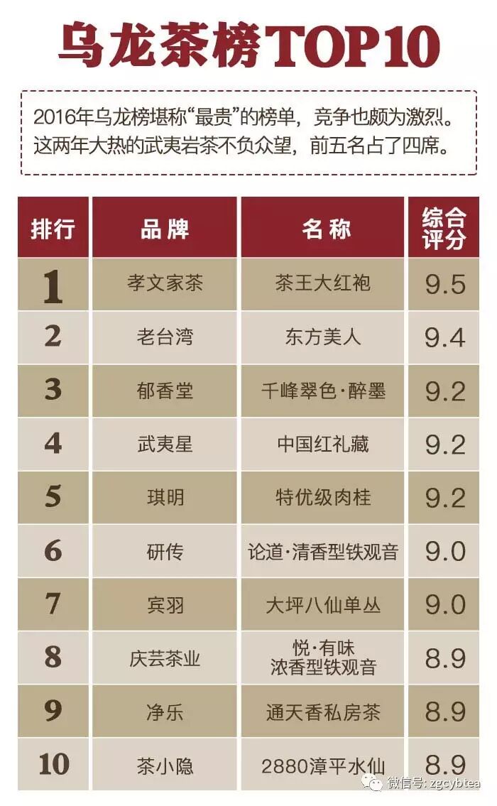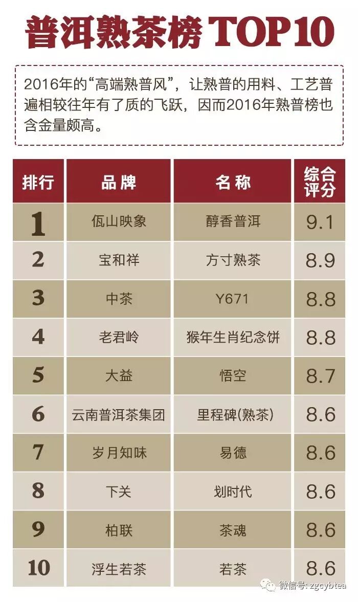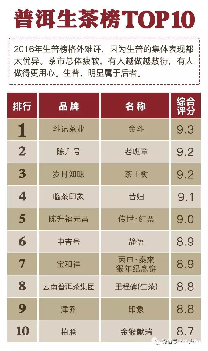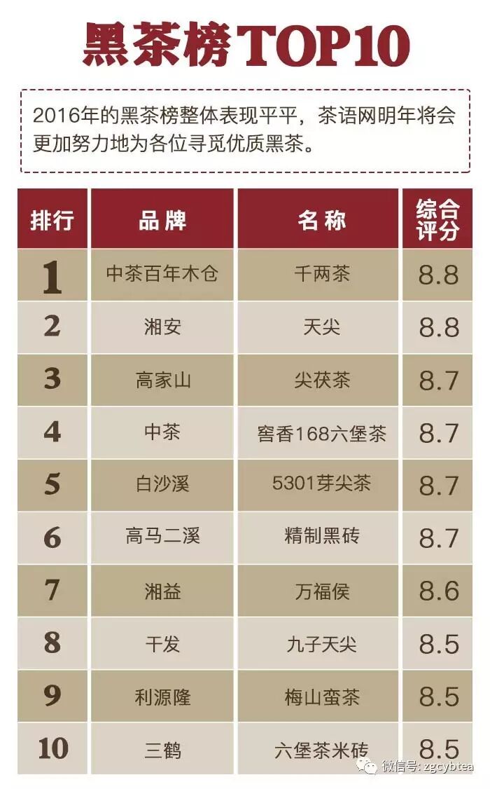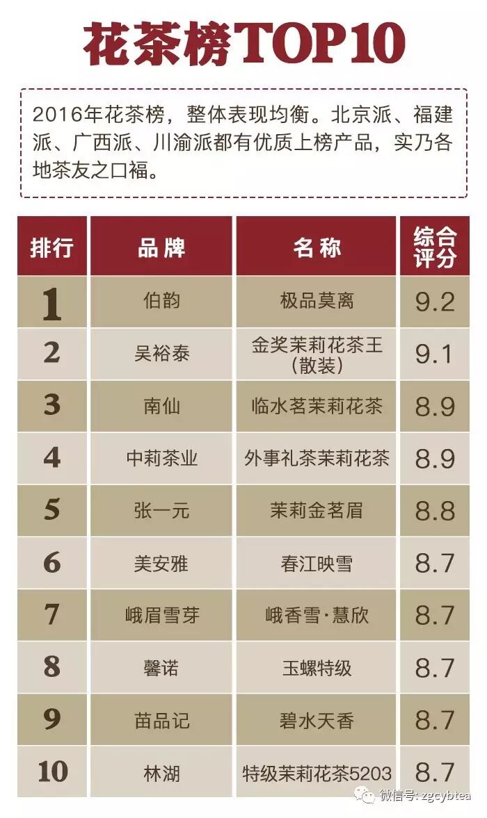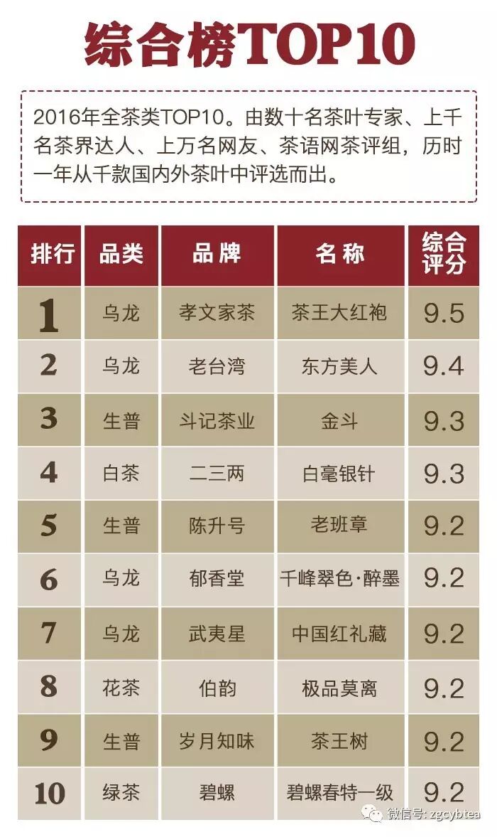 ——“2016年千款茶评榜”(部分)——