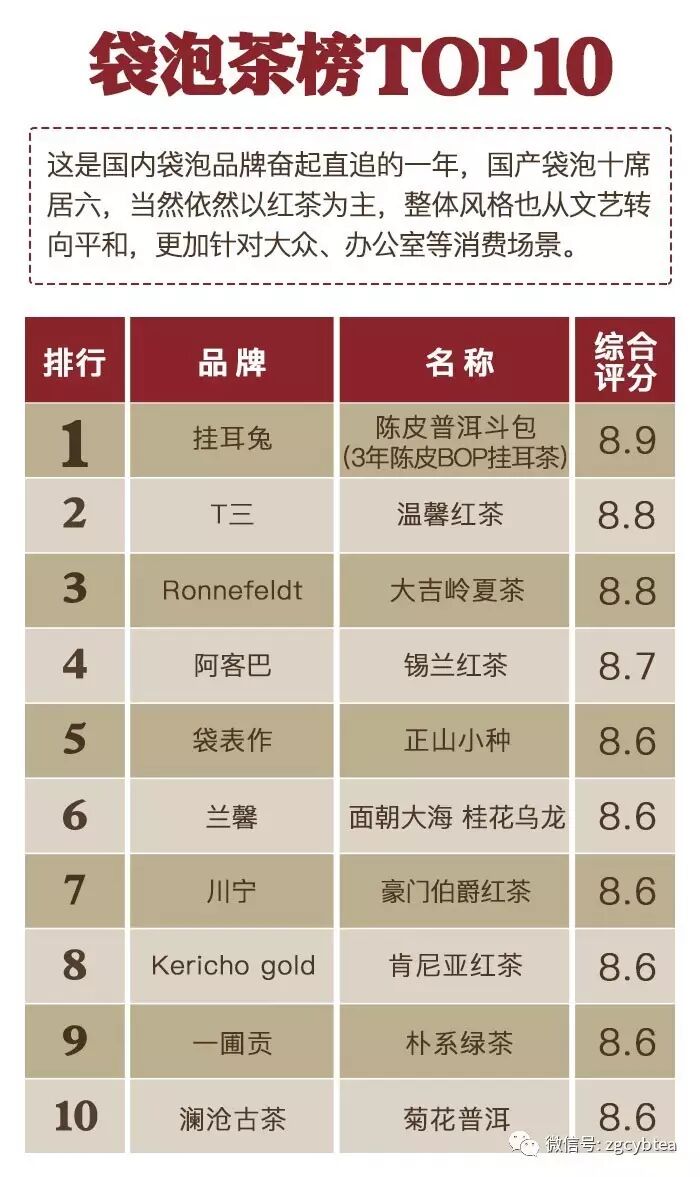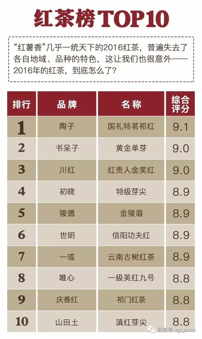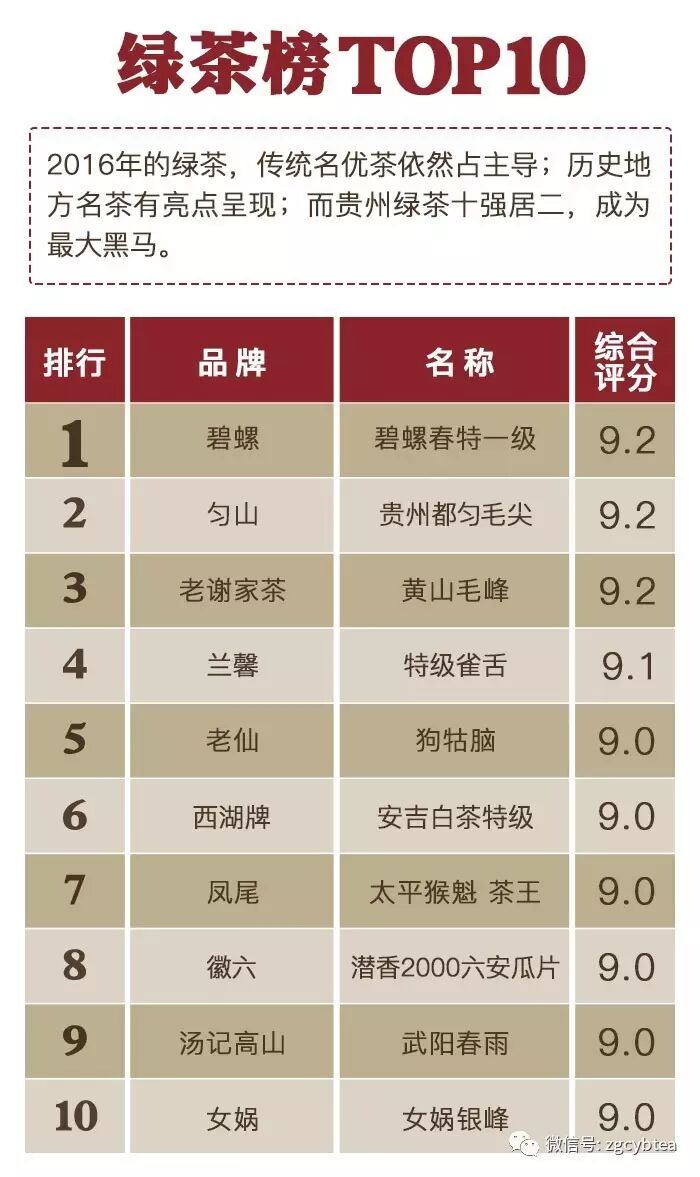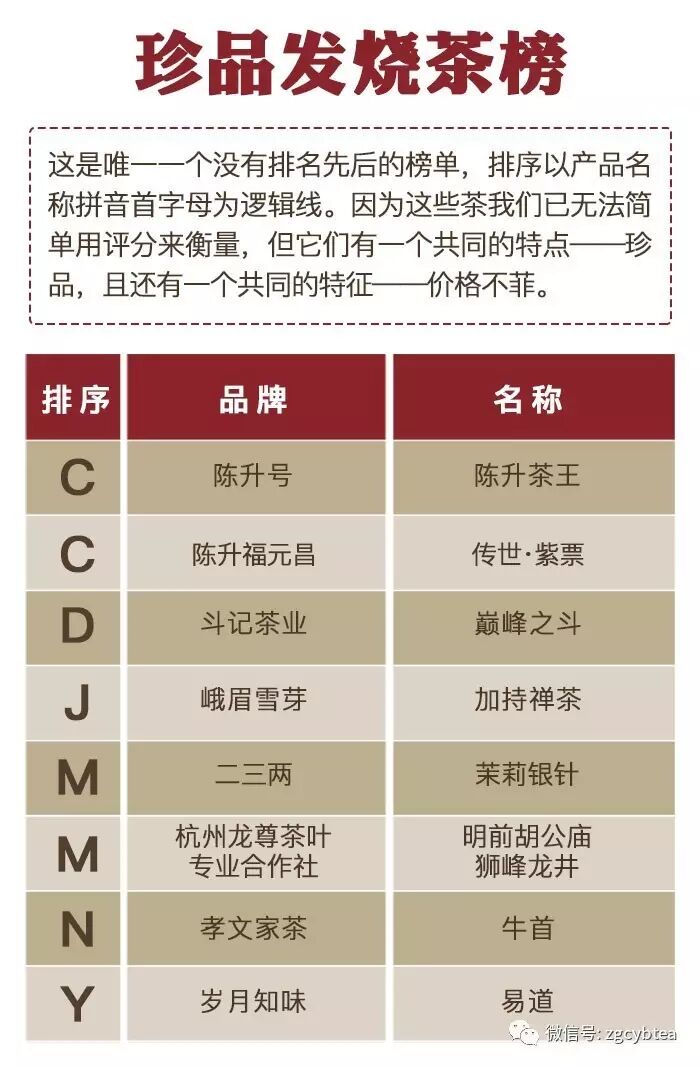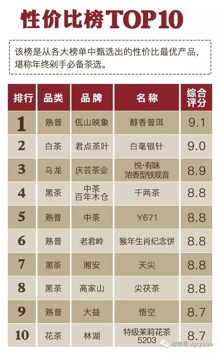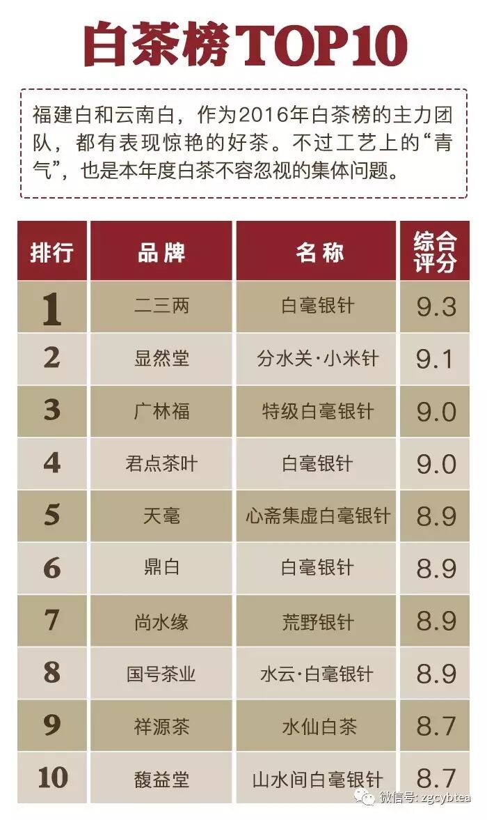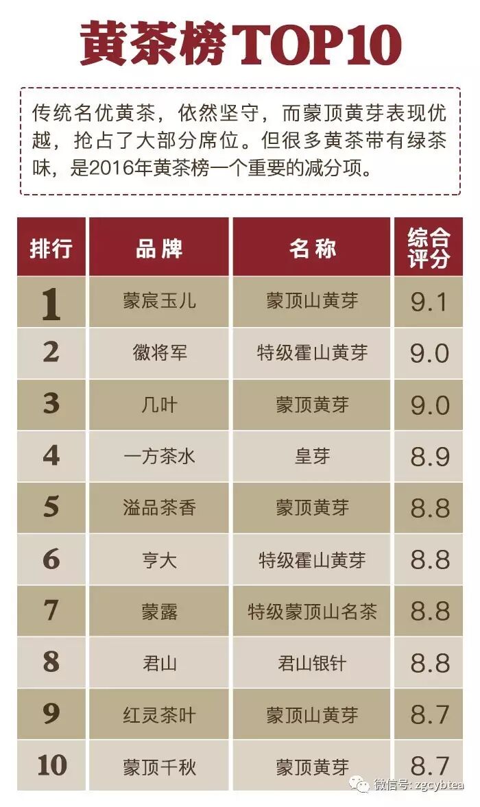 ——“2016年千款茶评榜”(部分)——