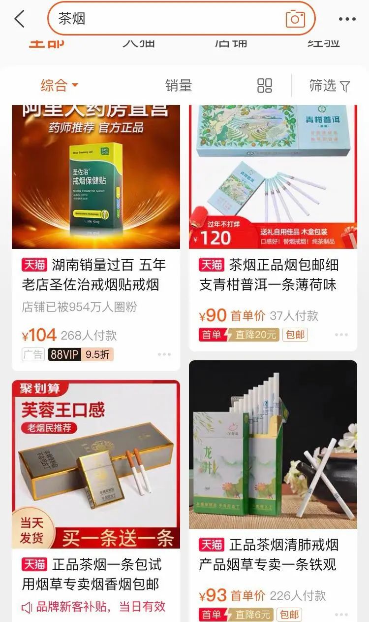 这些茶烟产品价格从二三十元到几百元不等。有的茶烟包装走茶叶的 " 清新风格 ",有的包装则模仿市面上香烟品牌的包装,有 " 华子 "" 茶天下 "" 蓝利群 " 等包装。