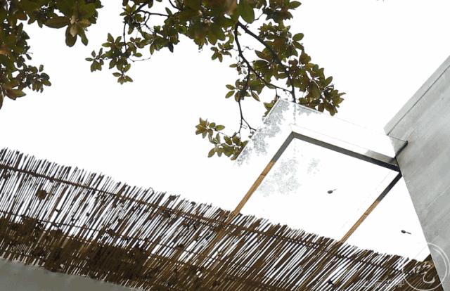 从楼底往上只看到一小块方形的天空,一棵百年龄的大树坐落在建筑中央,微风吹过,夏影绰绰...