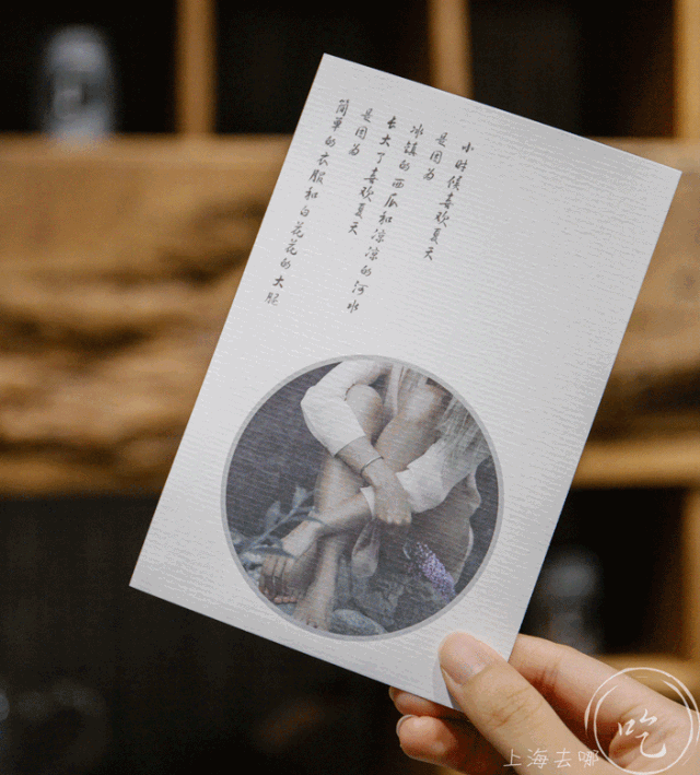 柜台上摆放着一些店里原创的明信片,“是夏天太热,而非我太害羞。”等茶的时候随便看看,心就像被撩了一下~