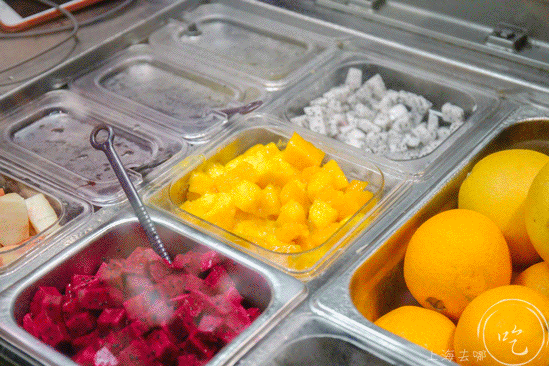 柜台处有个1米见长的冰柜鲜果格,水果比一般茶饮店的新鲜大块许多,全是点单后手工现捣,就是为了保留果肉纤维不被破坏,嚼着吃口感更好。