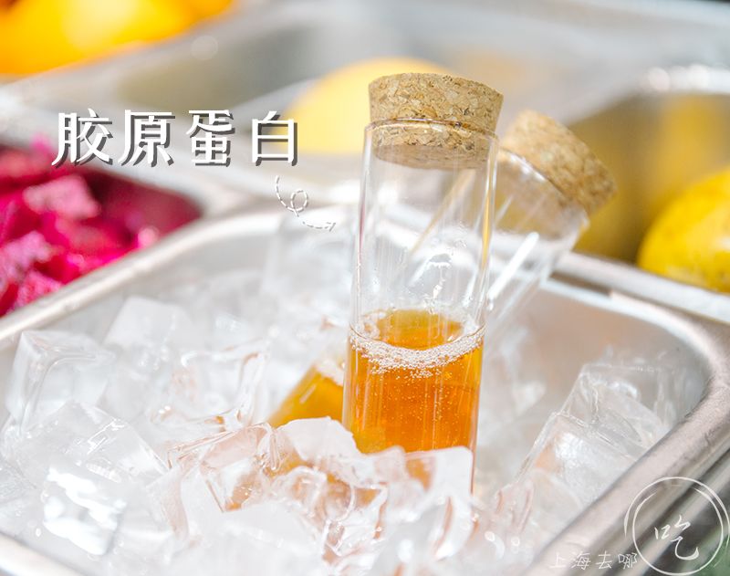 除了把酵素加入茶底,店里还有一款更厉害的“可以喝的神仙水”,在鲜果乳中滴入从深海鱼中提取的胶原蛋白,每喝一口都觉得“噗噗噗”在补水~