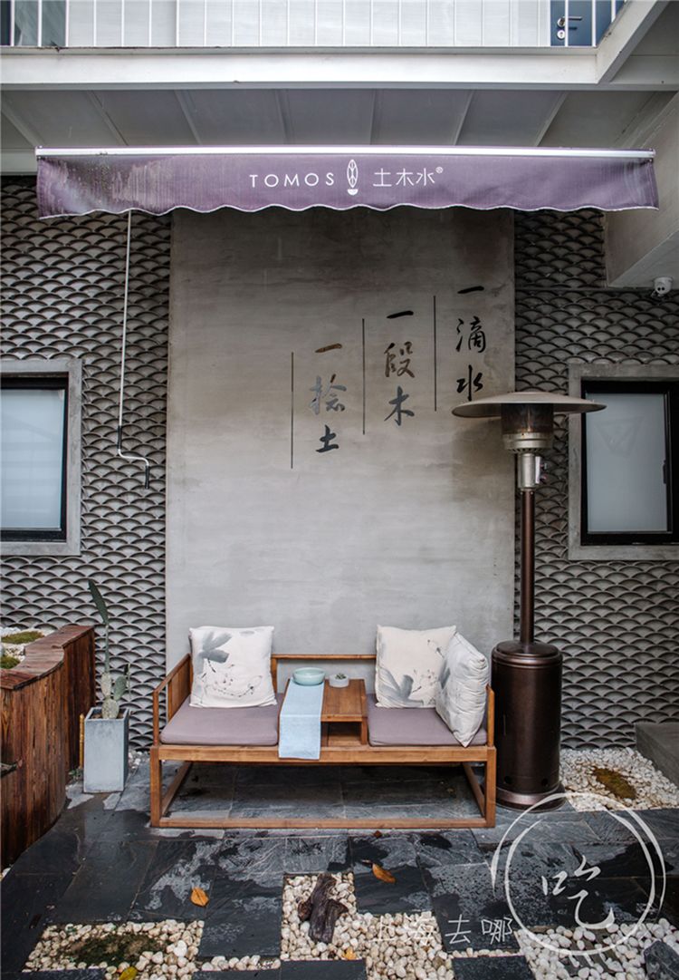 迈进弄堂里的圆拱门,穿过庭院才发现这是一家茶饮店。“土木水”这店名听上去有点直男,其实是“水归土木,人归自然”之意,讲求慢调子无负担的概念~