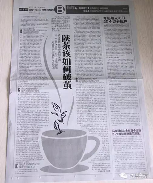 本文节选自2015年4月13日《华商报》B01《陕茶该如何破茧》。作者:刘百穏