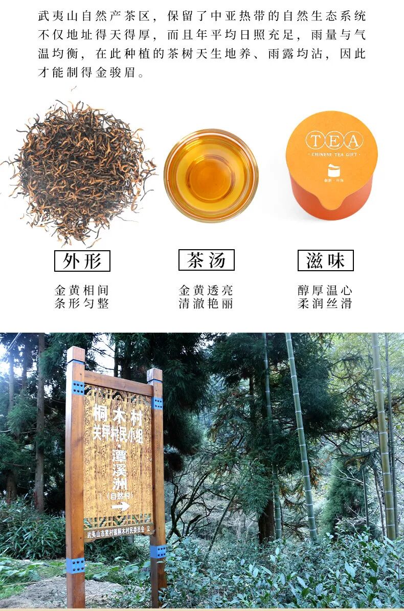 金骏眉产自福建武夷山,这里以“茶”闻名于世,被誉为“世界红茶的发源地”。