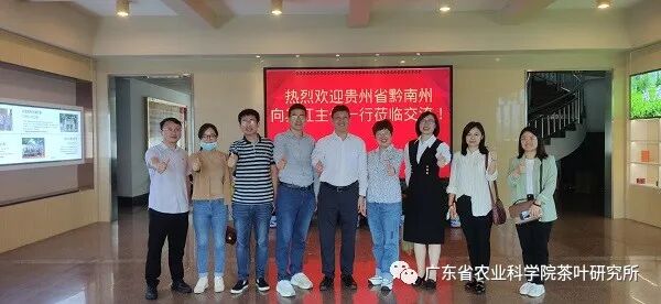 为深入贯彻落实粤黔东西部协作,助力黔南州茶产业提质增效,近日,贵州省黔南州人民政府驻广州办事处主任向其红、副主任尹仕勇、处长方颖及州科技局党组成员王潇等一行6人到我所开展交流考察。党总支书记孙建新、加工室相关人员接待了考察组一行。