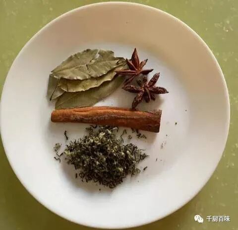 准备四样调料:香叶,八角,桂皮,茶叶,有这4样调料味道就足够了。