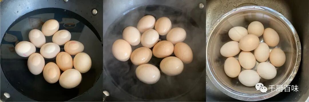 准备10来个鸡蛋,冷水下锅,大火煮10分钟,然后关火。把鸡蛋从开水里面捞出来,放入凉水里,浸泡5分钟。